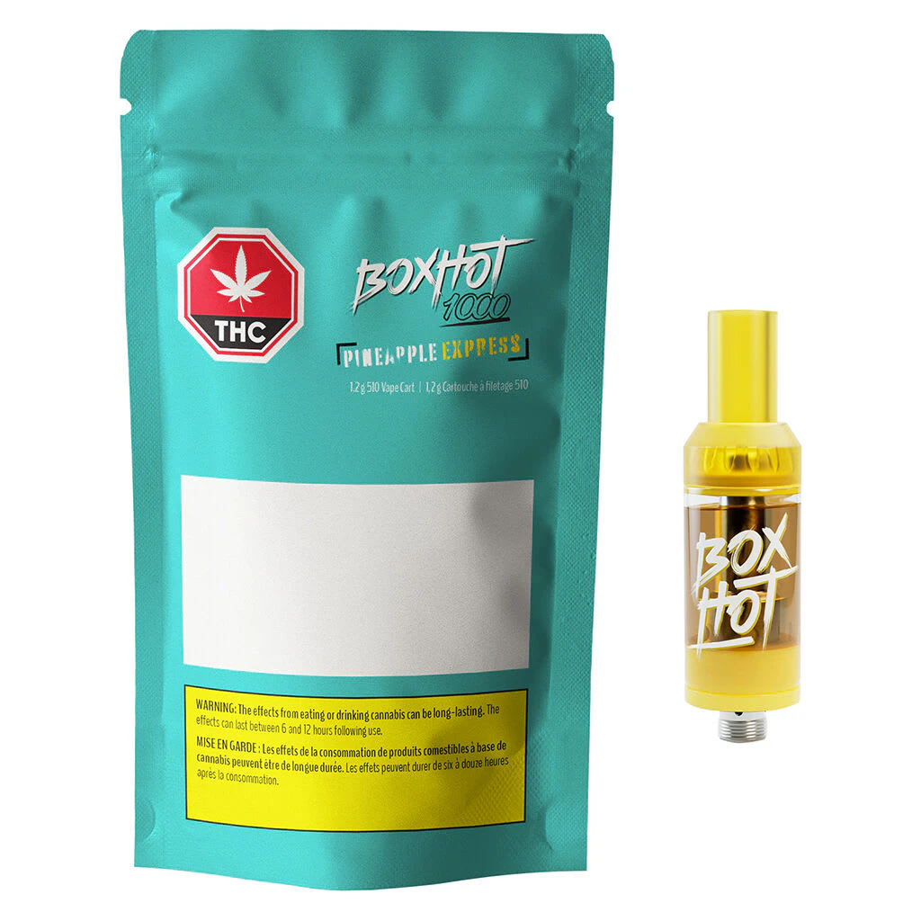 BOXHOT PRESENTS: Pineapple Express, a 1.2 g sativa 510 vape with a colossal 1000 mg of THC and some of the purest cannabis distillate available on the market. Soak up this monster monsoon of pineapple flavour with a tropical citrus twist to carry you away. All BOXHOT vapes are made with exclusive, oversized hardware, making them optimal for big, full hits. Best of all, BOXHOT vapes are produced using industry-leading CO2 extraction and refining processes and feature a premium blend of expertly infused terpenes.